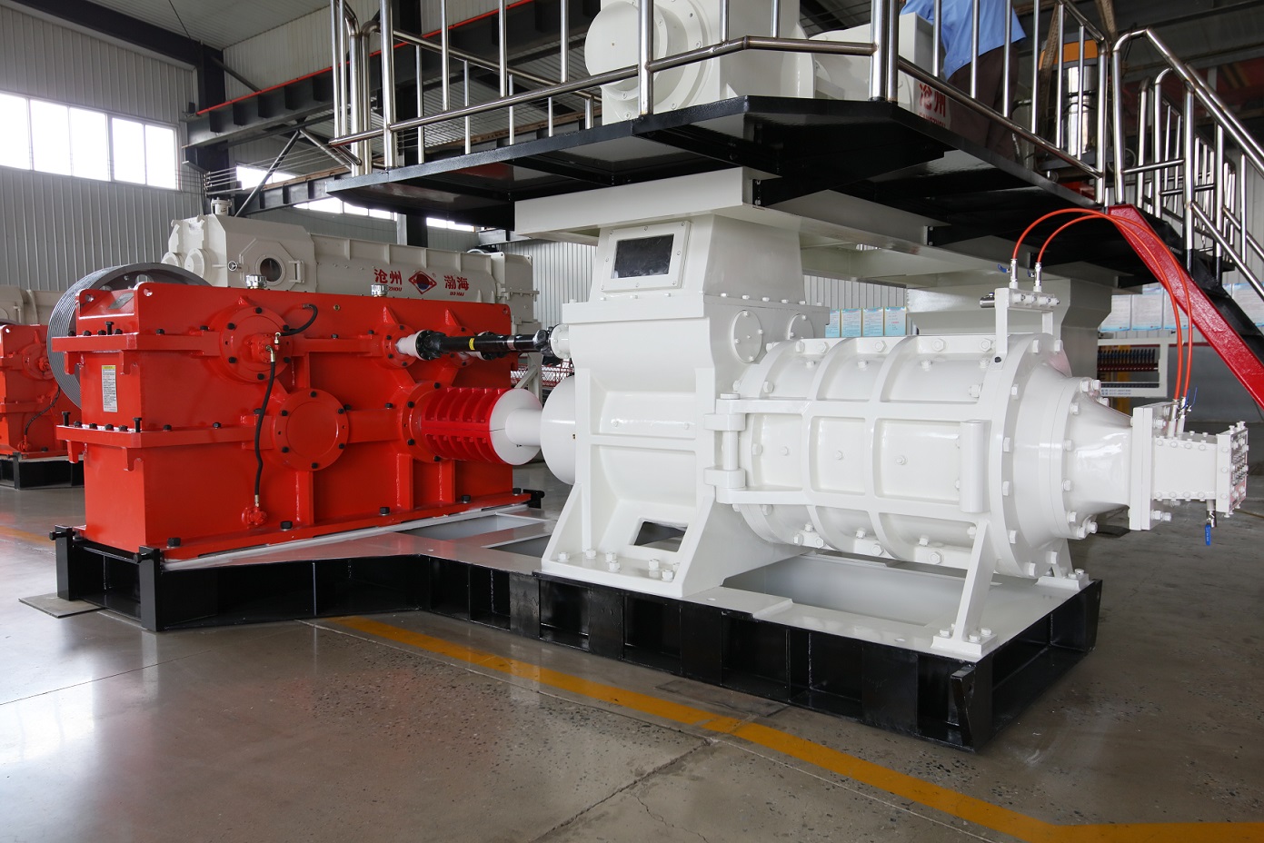 The main shaft bearing seat of the double stages single-shaft extruder is integrated with the mud tank, which ensures the concentricity of the main shaft and is conducive to effective and uniform extrusion. It has a large extrusion pressure and small fluctuations. The flexible combination design of the upper and lower stages makes the mixing length of the upper and lower stages particularly long. The compression section pre-compresses the clay material, ensuring a high degree of vacuum and making the brick blank body denser. With its reasonable design and compact structure, the equipment is easy to maintain, reducing downtime and maintenance costs. The double stage single-shaft extruder not only improves production efficiency and quality but also reduces production costs through energy conservation and consumption reduction.