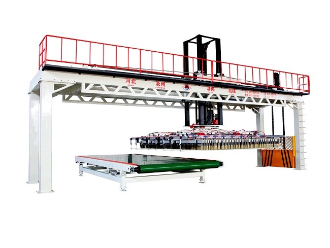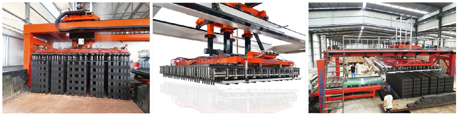 Automatic clay brick stacking machine is divided into three lifting methods: servo lifting, hydraulic lifting and mechanical lifting. The machine adopts advanced servo control system, which has high running precision, accurate positioning and stable working. The brick stacking machine has the functions of automatically clamping, transporting and releasing stacks. The palletizing form of the brick can be designed according to the requirements of the user, which is suitable for the use of various tunnel kilns.